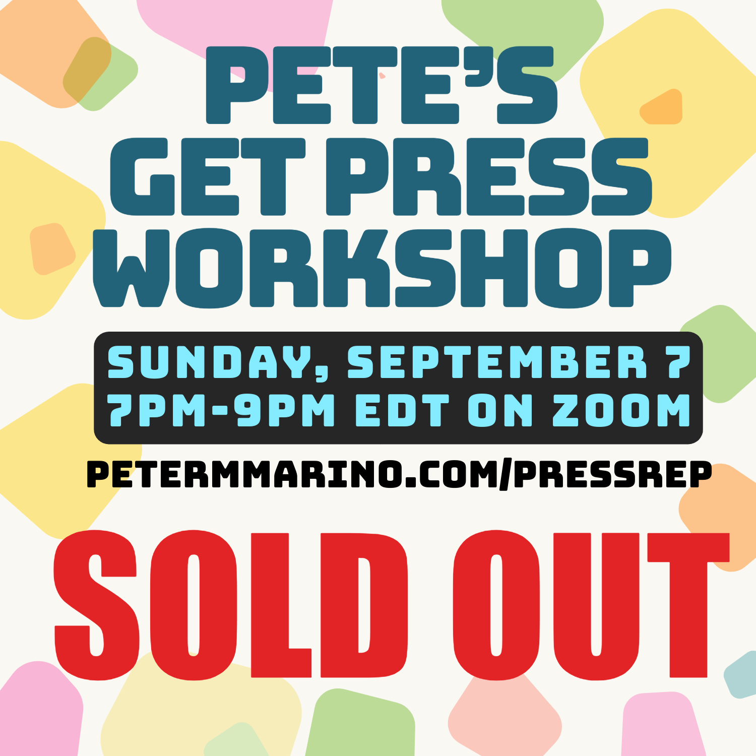 What goes into a press release? How do you get press to read them? How do you get listings, stories, and reviews? HOW DO YOU DO THIS?! These topics will be tackled at Pete's fun, interactive, idea-generating Zoom workshop which will empower you to create and send your own press releases. We'll discuss how to create engaging press releases, the different types, generating press-worthy ideas, and figuring out how to reach your audience. We'll discover effective ways to get the word out about your show, song, product, event, etc. Plus, you'll receive access to press release templates and samples.